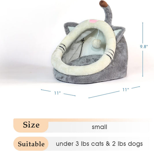 Cute Cat Bed, Indoor Lovely Crystal Velvet Igloo for Cat, Warm Cave Sleeping Nest Bed for Puppy and Kitten, Grey Cat, S.
