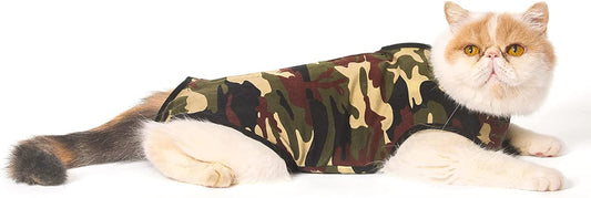 Cat Recovery Suit, Cat Bodysuit for Abdominal Wound after Surgery or Skin Diseases, Substitute E-Collar, L Size, Anti-Licking Surgical Cat Onesies, Camo.