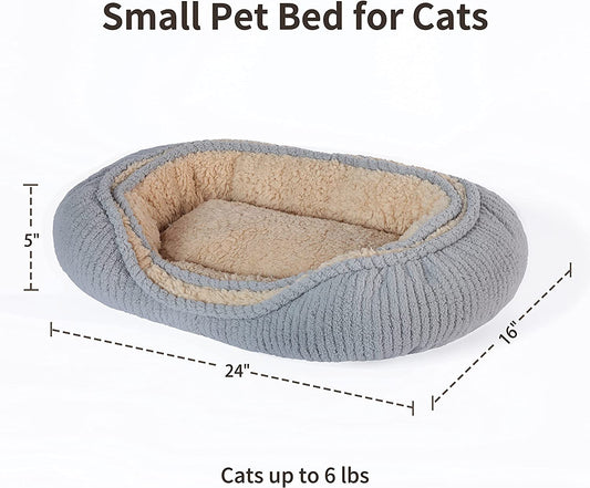 Cat Bed for Cats and Pocket Puppy | Small Size L24”X W16”| Out of the Box | Integrated Design | Cozy and Comfy | 100% Full of PP Cotton