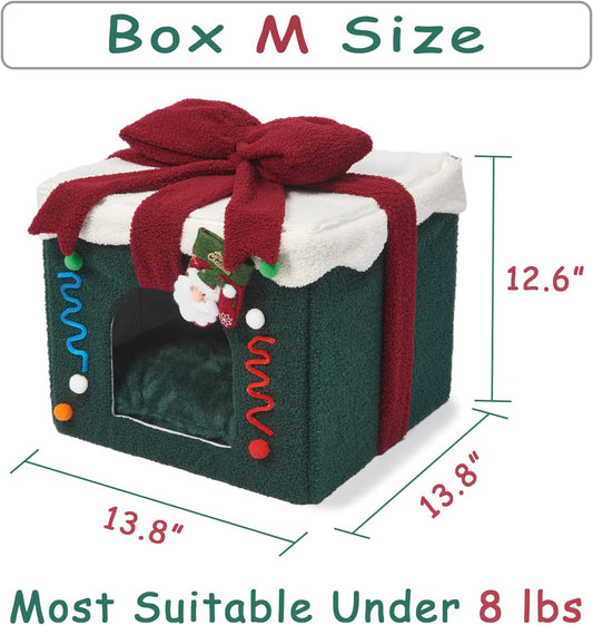 Christmas Cat House, Indoor Cat Bed, M(13.8"X13.8"X12.6") Size Cube for Kitten and Small Cat, Removeable Cat Cave with Non-Slip Bottom, for Cat.